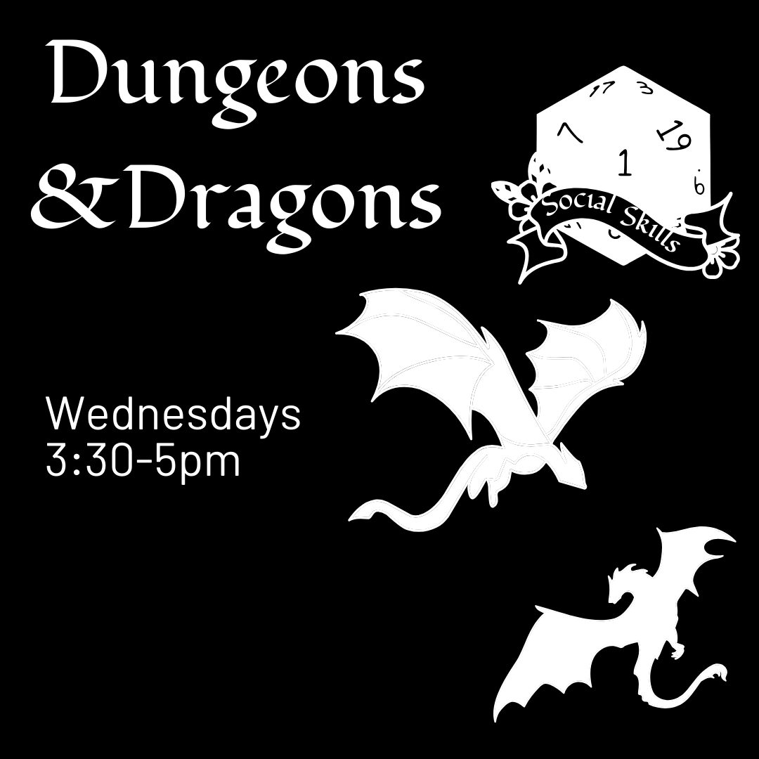 Using the world of Dungeons & Dragons, participants will build friendships, explore teamwork, and practice important life skills. No D&D experience required! Characters, dice, and guidance will be provided.